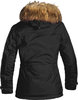 Una jaqueta d'hivern senzilla però elegant de senyores amb una falsa caputxa de pell i dues butxaques exteriors que ofereixen prou espai d'emmagatzematge per a les vostres pertinences personals.
