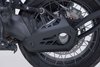 La lámina de aluminio de 3 mm de grosor proporciona una protección eficaz contra astillas de piedra, grava voladora, ramas o el contacto con obstáculos en el terreno. El resistente recubrimiento en pólvora mate negro proporciona protección adicional contra la corrosión y resalta el aspecto robusto y aventurero de la motocicleta.