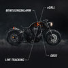 Bevægelsessensor: Så snart RideLink WingMan Pro er tilsluttet motorcykelbatteriet og permanent installeret på din maskine, kan de meget følsomme sensorer registrere enhver bevægelse på din motorcykel. Hvis din motorcykel utilsigtet begynder at bevæge sig, modtager du automatisk en advarselsmeddelelse på din smartphone. Du kan nemt tænde og slukke bevægelsessensoren når som helst, f.eks. til transport af en motorcykel på en trailer.