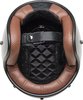 Der Helm ist leicht gebaut und bietet mit fünf Schalengrößen eine individuelle Passform für jeden Kopf. Die gepolsterte Innenausstattung sorgt für hohen Komfort bei längeren Fahrten, während die gesteppte, plüschige Innenverkleidung mit Kontrastnähten ein luxuriöses Fahrgefühl vermittelt. Das integrierte 5-Rastmuster ermöglicht die flexible Nutzung verschiedener Schilde und Visieroptionen, sodass der Custom 500 Flake sowohl praktisch als auch stilvoll ist.