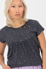 Área do busto levemente franzida com costura divisória adiciona um personagem fofo à camisa