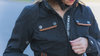 Jaqueta vintage impermeável com zíper frontal duplo para ventilação ajustável. Braços e cintura ajustáveis para o melhor ajuste. Grandes bolsos internos. Fecho de correr para fixação de calças. Protetores de ombro e cotovelo.